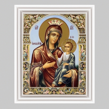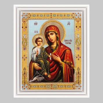 Икона в деревянной рамке №3 11х13 (белая) двойное тиснение Троеручица 4