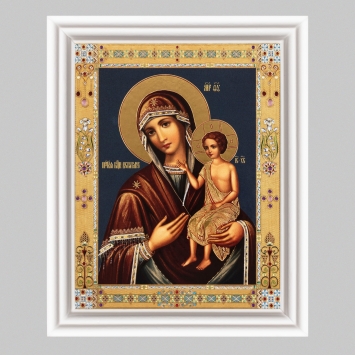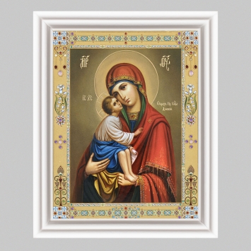 Икона в деревянной рамке №3 11х13 (белая) двойное тиснение Феодоровская БМ 6
