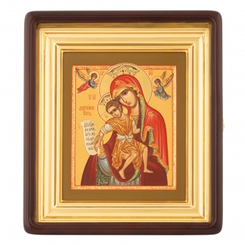 Икона живописная в киоте 11х13 масло, риза открытая, латунь, золочение, киот №2 Умиление БМ, 03914
