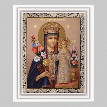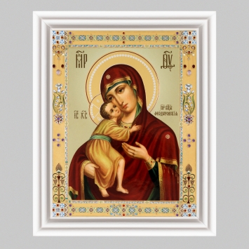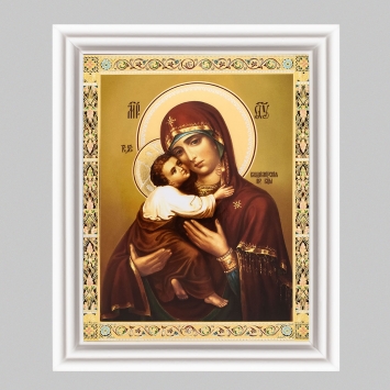 Икона в деревянной рамке №3 11х13 (белая) двойное тиснение Владимирская БМ 40