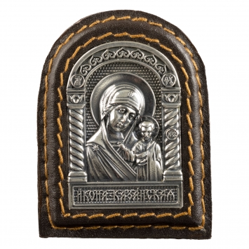 Икона в металлической рамке автомобильная на липкой ленте г / пластика кожа серебрение чернение Казанская БМ