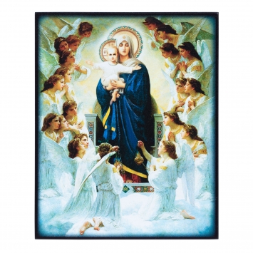 Икона на доске 13х15 объёмная печать, лак Богородица с ангелами
