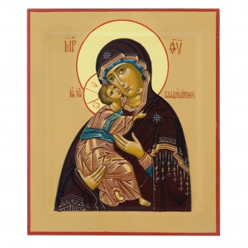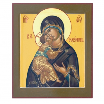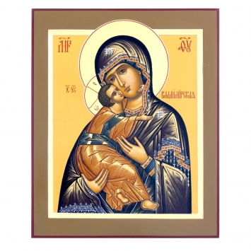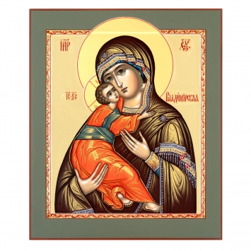 Икона живописная на доске 24х30 темпера, золоченый нимб, ковчег Владимирская БМ, 02689