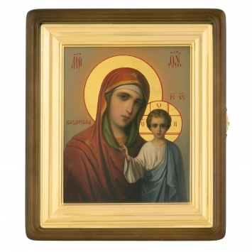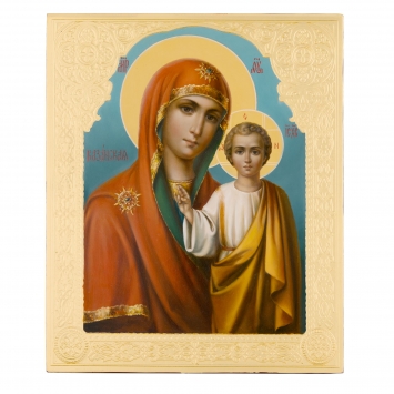Икона живописная на доске 24х30 золоченая рамка, лазерная гравировка Казанская БМ, 03878