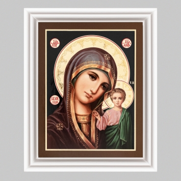Икона в деревянной рамке №3 11х13 (белая) двойное тиснение Казанская БМ 39