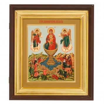 Икона живописная на доске в киоте 24х30 темпера, золоченый нимб, ковчег, киот №1 Живоносный Источник, 05477