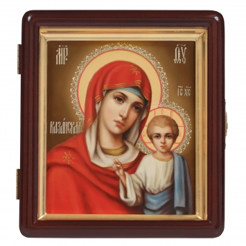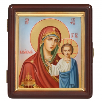Икона живописная на доске в киоте 13х15 масло, киот №1 Казанская БМ, 05644