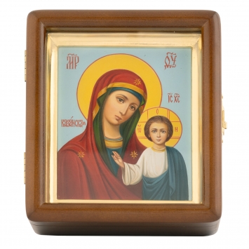 Икона живописная на доске в киоте 11х13 масло, киот №1 Казанская БМ, 03903
