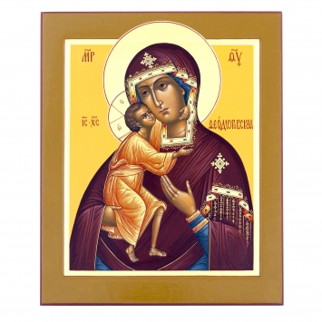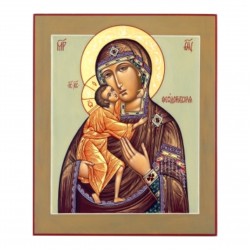 Икона живописная на доске 24х30 темпера, золоченый нимб, ковчег Феодоровская БМ, 03887