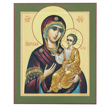 Икона живописная на доске 24х30 темпера, золоченый нимб, ковчег Иверская БМ, 03890