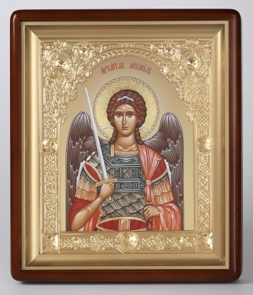 Икона в киоте 18х24 фигурный, фото, риза-рамка частично золочёная Заказной лик