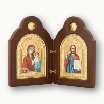 Складень резной Фигурный, икона 9х12 канвас, №1 Спаситель-Казанская БМ