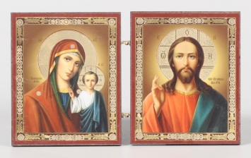 Икона в пластмассовой рамке Складень 9х12 двойной арочный риза №2 Спаситель-Казанская БМ