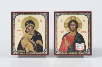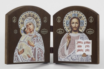 Икона в жесткой ламинации складень-двойник 7х12 двойное тиснение Спаситель-Владимирская БМ 4