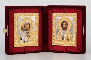 Складни живописные в футляре 11х13 масло, ризы №8, №28 (бархат) Спаситель-Владимирская БМ