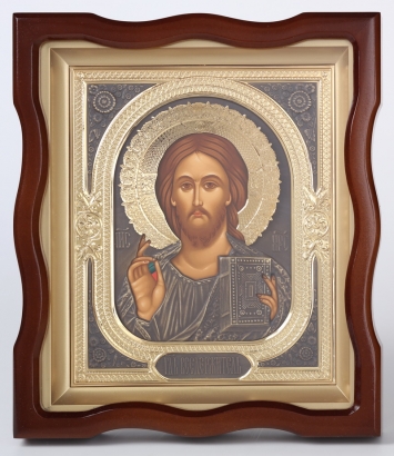 Икона живописная в гальванопластической ризе 24*30 / киот / Господь Вседержитель
