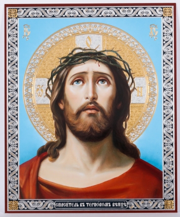 Икона на оргалите №1 11х13 двойное тиснение Спас в терновом венце №3