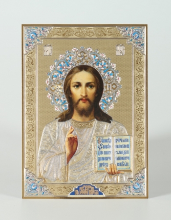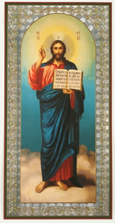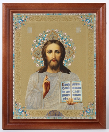 Икона на оргалите №1 30х40 двойное тиснение Спаситель ростовой №2