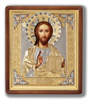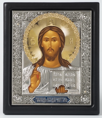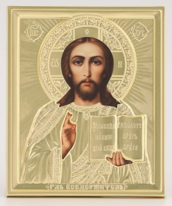 Икона в ризе 11х13 планшет, темпера, эмаль, никель, упаковка Спаситель
