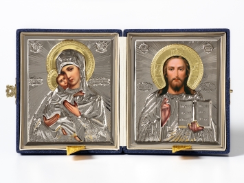 Складень в футляре 6х7 зафиро, плёнка, риза объемная Спаситель-Казанская БМ