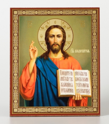 Икона на доске 13х15 объёмная печать, лак Спаситель 3