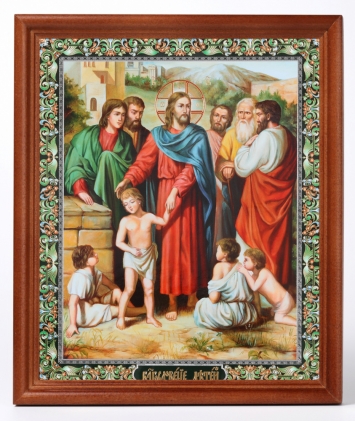 Икона в деревянной рамке №1 18х24 двойное тиснение Благословение детей 3
