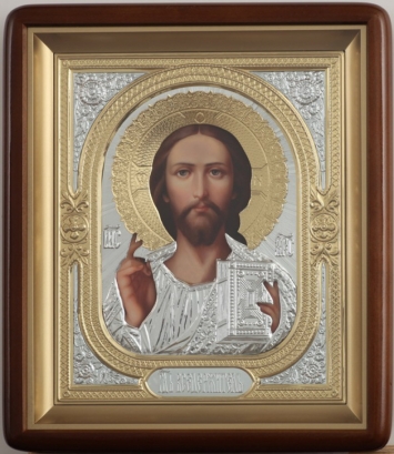 Икона в киоте 18х24 фигурный, фото, риза объёмная №1 Спаситель