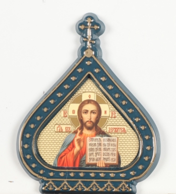 Икона в металлической рамке 6х7.5 фигурная, тиснение, на подставке, эмаль, золочение Спаситель