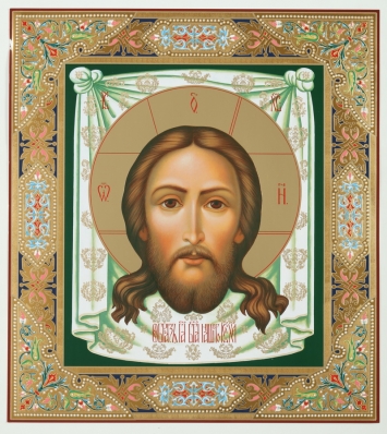 Икона на оргалите №1 30х40 двойное тиснение Спас Нерукотворный 01