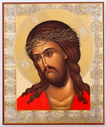 Икона в деревянной рамке №1 18х24 двойное тиснение Спас в терновом венце №2