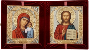 Складни живописные в футляре 24х30 темпера, ризы №1, №24 (бархат) Спаситель-Казанская БМ