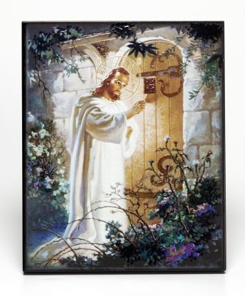 Икона на доске 13х15 объёмная печать, лак Спас стучит в дверь