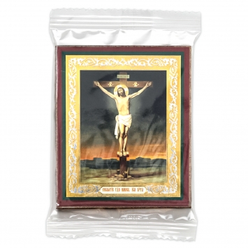 Икона на деревянном планшете 6х9 двойное тиснение, аннотация, упаковка Распятие