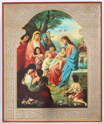 Икона на оргалите №1 18х24 двойное тиснение Благословение детей