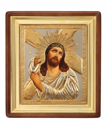 Икона в киоте 18х24 фигурный, темпера, риза объемная, зол., никелир., без цаты Спаситель