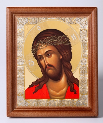 Икона в деревянной рамке №1 11х13 двойное тиснение Спас в терновом венце №2