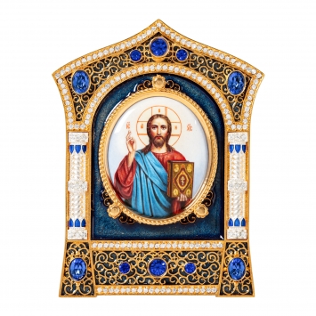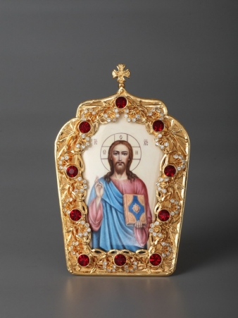Икона настольная №136 деколь, эмаль / золочение, серебрение / Спаситель