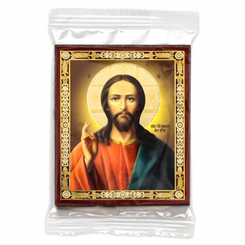 Икона на деревянном планшете 6х9 двойное тиснение, аннотация, упаковка Спаситель 30