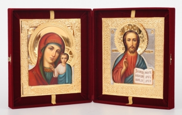 Складни живописные в футляре 24х30 масло, ризы №7, №36 (бархат) Спаситель-Казанская БМ