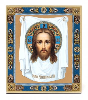 Икона на доске 13х15 золоченое покрытие, объёмная печать, лак Спас Нерукотворный