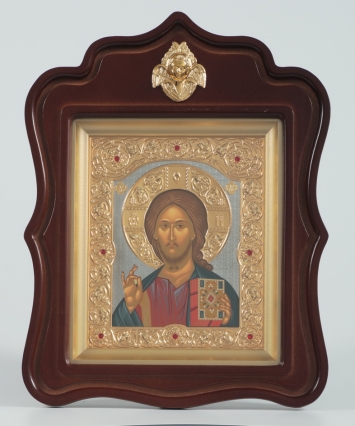 Икона в киоте 6х7 фигурный №2 риза объемная, частично золочёная Спаситель