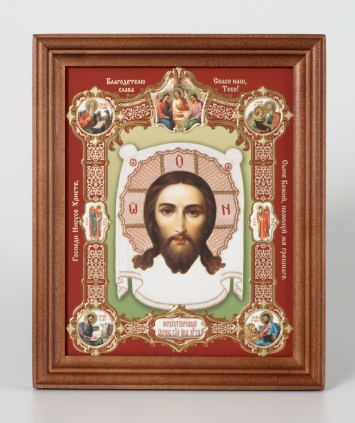 Икона на деревянном планшете 13х18 конгрев, плёнка (18мм) Спас Нерукотворный (с клеймами)