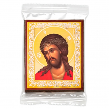 Икона на деревянном планшете 6х9 двойное тиснение, аннотация, упаковка Спас в терновом венце №2