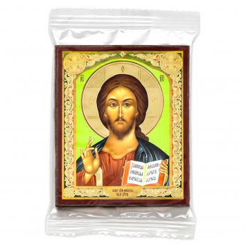 Икона на деревянном планшете 6х9 двойное тиснение, аннотация, упаковка Спаситель 8