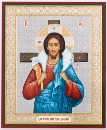 Икона на деревянном планшете 11х13 двойное тиснение Добрый Пастырь