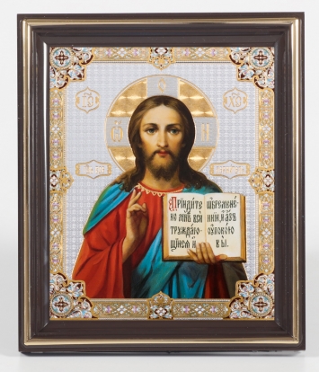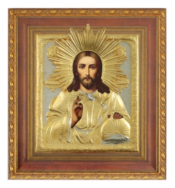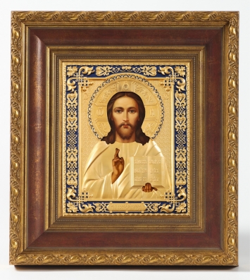 Икона живописная в киоте 24х30 масло, риза №96, матовое золочение, киот №22 Спаситель