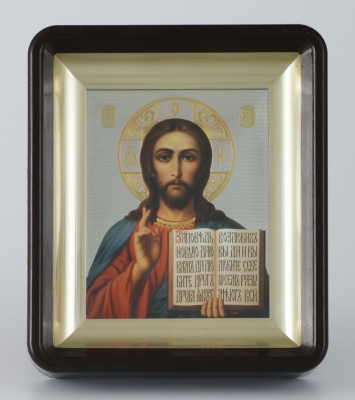 Икона в пластмассовой рамке 5х7 пластмассовая с подставкой Спаситель