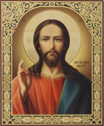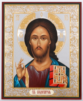 Икона на деревянном планшете 30х40 двойное тиснение, ДСП, ПВХ Спаситель ростовой №2