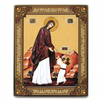 Икона на доске 13х15 золоченое покрытие, объёмная печать, лак Первые шаги Иисуса Христа