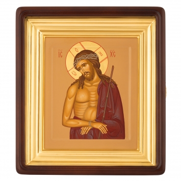 Икона живописная на доске в киоте 18х24 темпера, золоченый нимб, ковчег, киот №1 Спас в терновом венце, 04415